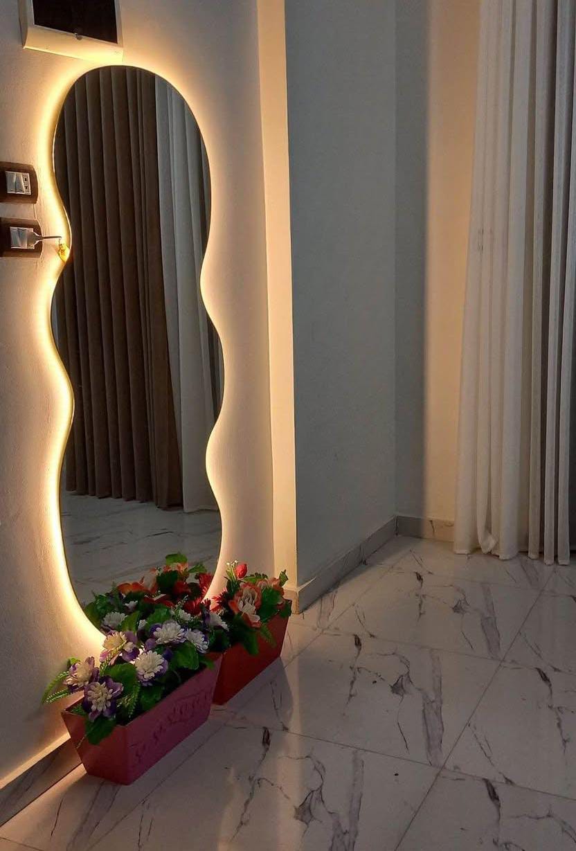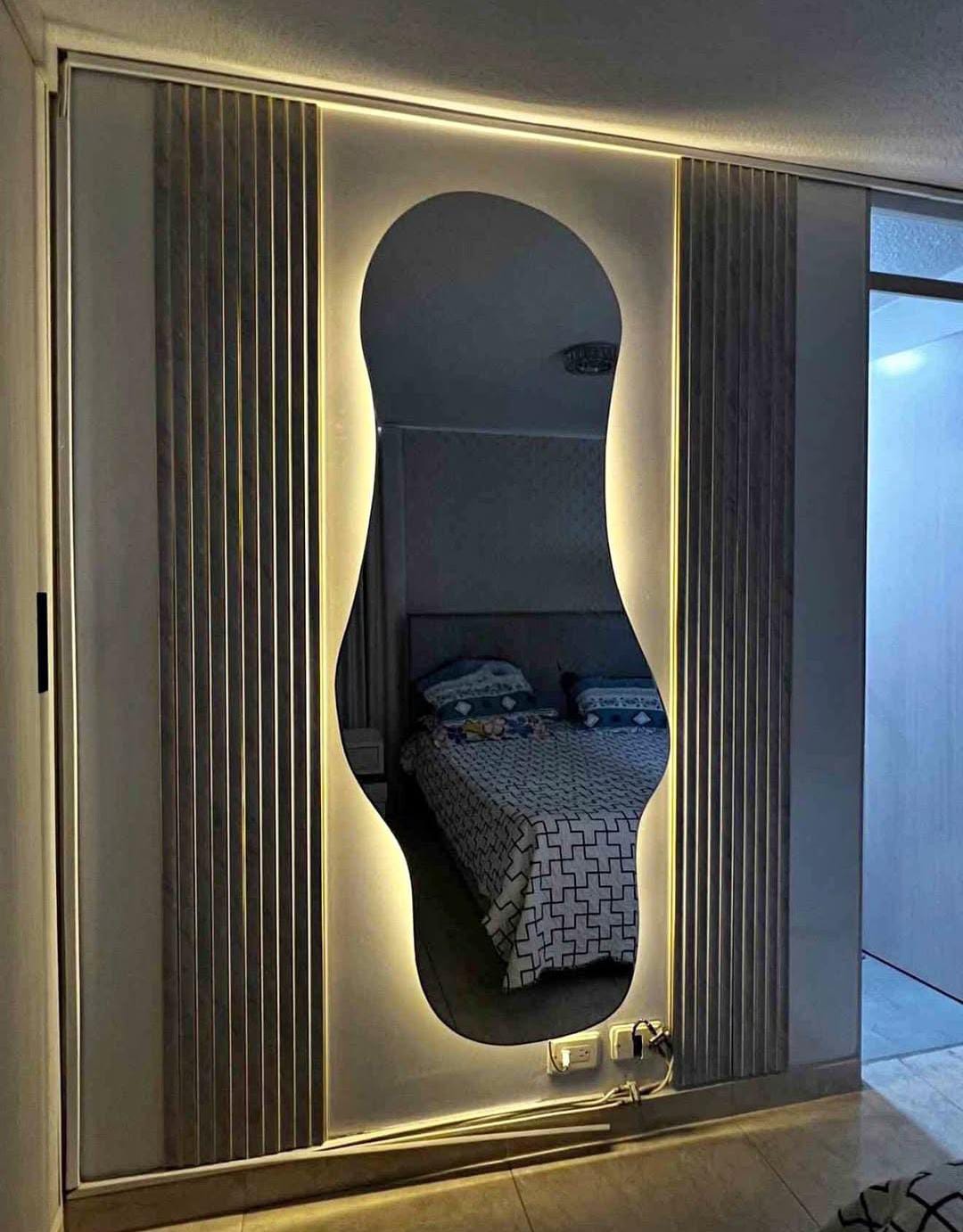 Espejos decorativos a medida que transforman tus espacios. Diseños únicos en forma, con iluminación integrada que resalta cada detalle y crea ambientes modernos y sofisticados.